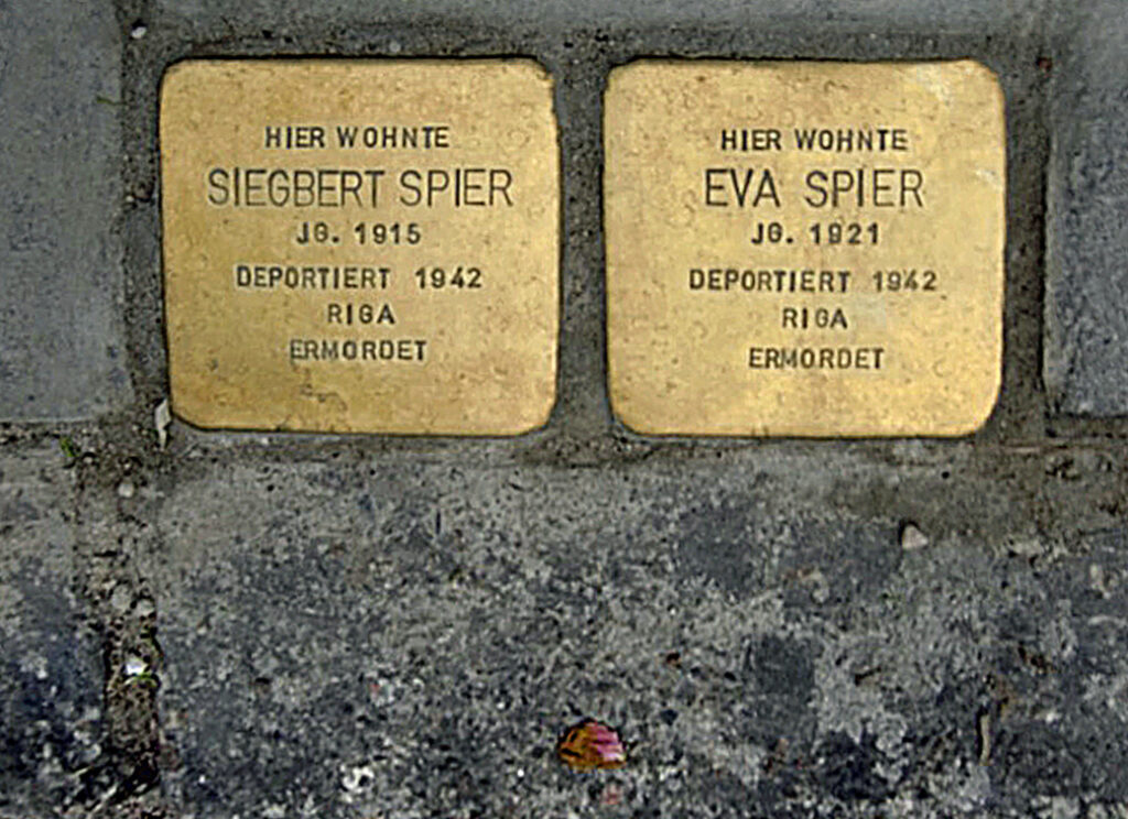 Siegberts Vater Hermann Spier (geboren am 22. April 1885 in Schrecksbach/Hessen, hier seine Lebensgeschichte/PDF) war ein jüdischer Religionslehrer und Kantor, der in den 1930er Jahren in Prenzlau tätig war und mit seiner Frau g im April 1942 nach Warschau deportiert wurde (wo sich die Spur verlor). Siegbert war das zweitälteste der Kinder, neben Ruth (die in die USA emigrierte) und Hans (der 1933 nach Palästina auswanderte). Er wollte Tierarzt werden, arbeitete dann aber als Melker in Funkenhagen. Im Januar 1942 heiratete er Eva und zog mit ihr in ein Arbeiterhäuschen in Thomsdorf. Am 15. August 1942 wurden die beiden aus ihrer Wohnung geholt, über Berlin-Moabit deportiert und nach Riga verschleppt. Bereits am 18. August 1942 wurden sie dort gemeinsam mit zahlreichen weiteren Deportierten in einem Wald bei Riga ermordet.
